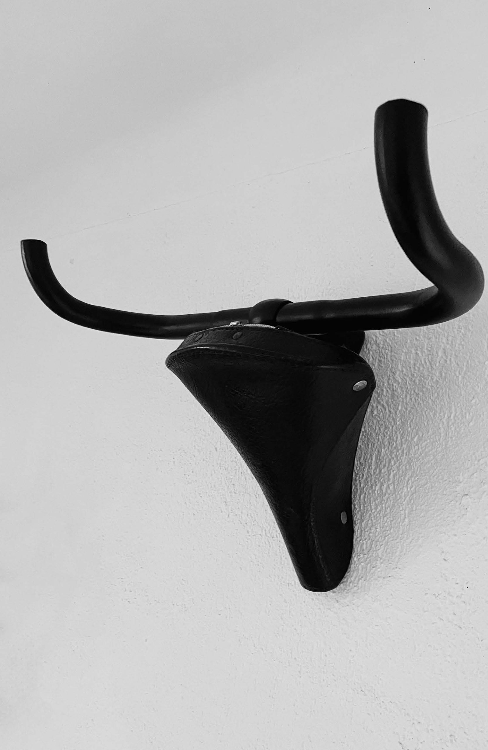 Création d’une tête de taureau avec deux objets ordinairement communs : une selle et un guidon de vélo.